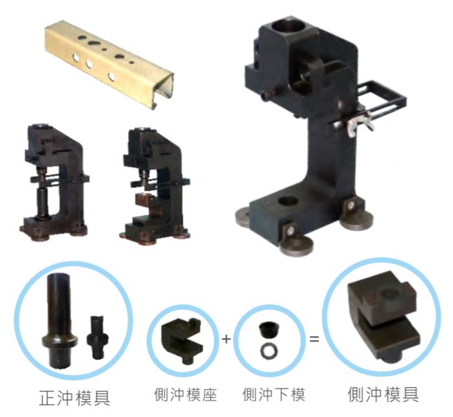 專沖型鋼正方位孔,亦有側沖模具可供選配